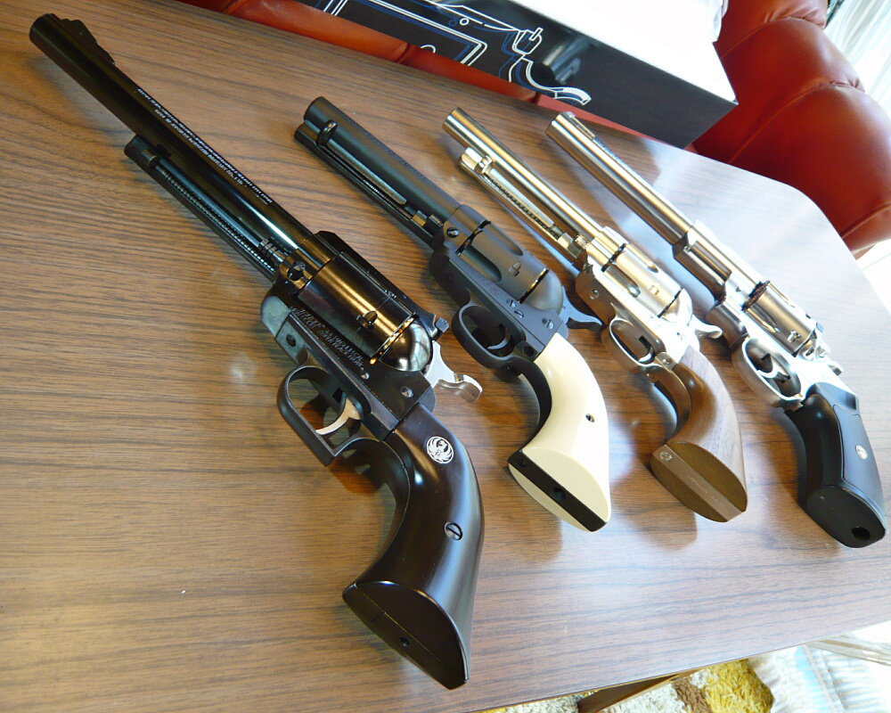 左からマルシンSAA、マルシンスーパーブラックホーク、タナカSAR「レンジャー」。