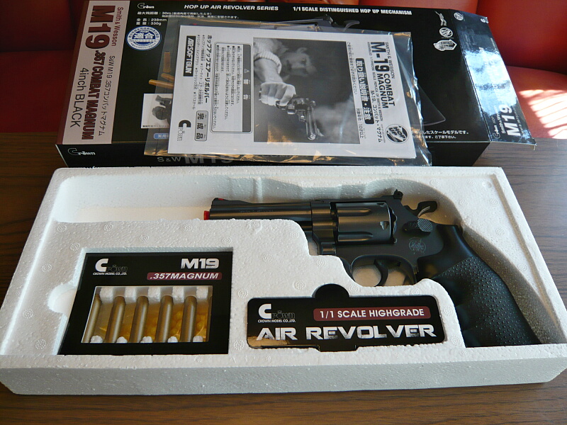 クラウンのホップアップエアリボルバーNo.6 S&W M19 4インチブラック(10歳以上用)です。