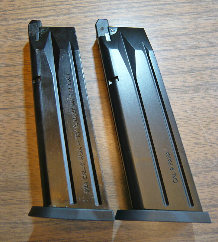 左がマルイ純正、右がWE製。表面処理はマルイが染めでWEが塗装。染めとか塗装とかAKみたいやな・・・