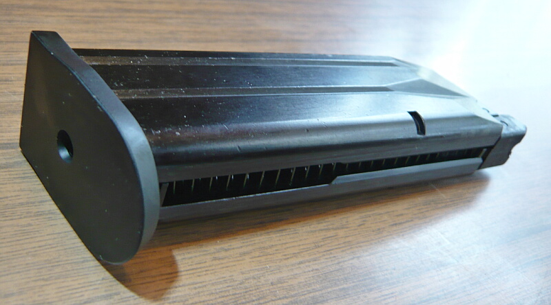 少し強めにスカンと叩き込む感じでないとマガジンキャッチが掛からないのは標準マグでも同じ。ちゃんとロックできています。