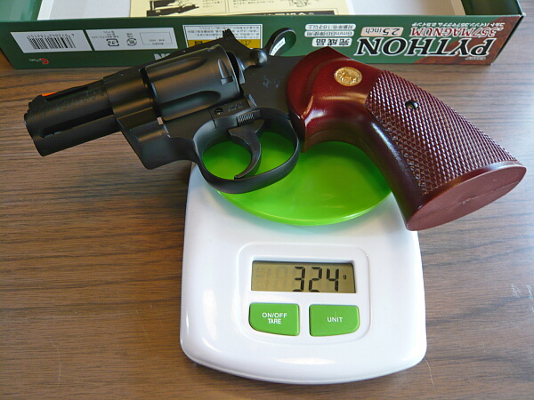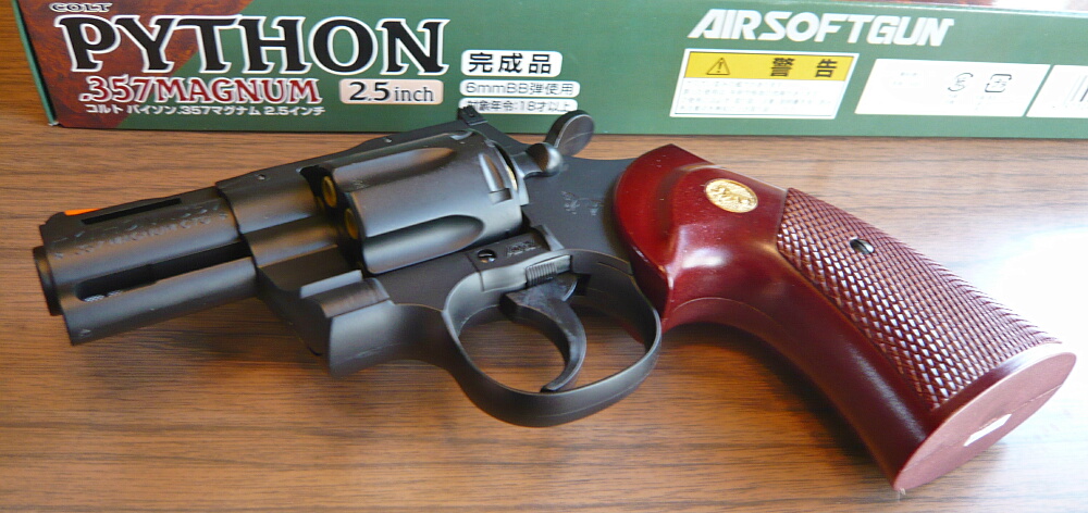 パイソンは正直もうさんざ買ったのでもういいかな…と思っていたのですが、M19の時に間違ってパイソン用の金属カートを買ってしまったので「じゃあ買うか…」という感じ。いやパイソン好きですけども。マルイのエアリボ持ってるし。じゃあ10禁じゃなく18歳以上用で、短いやつにしようと2.5インチ。