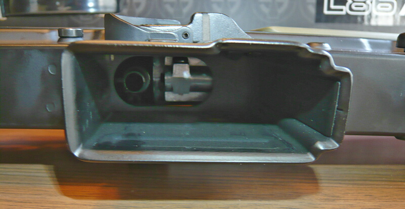 マグウェル下から覗くと奥にはチャンバーとメカボックスの一部が見えます。