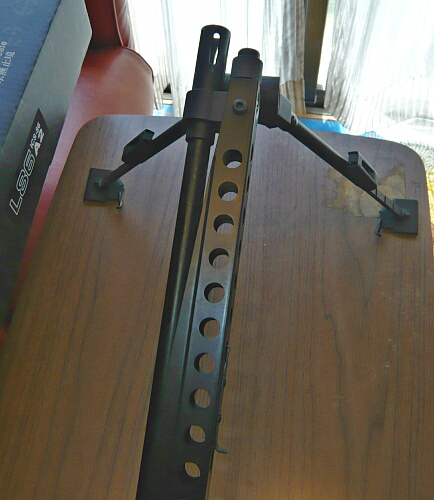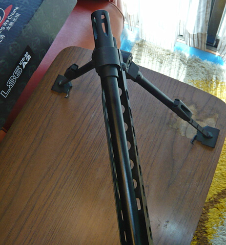 L86の特徴的なバレル周り。バレル下に構造物を介して先端にバイポッドが装着されています。