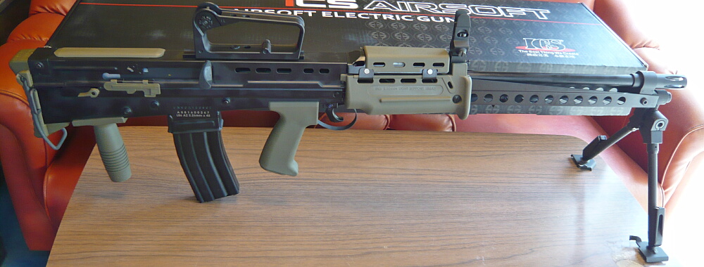 L86A2はイギリス軍の制式小銃であるL85A2の軽機関銃仕様であり、L86 LSWとも呼ばれます。位置づけとしてはAK47に対するRPKのようなもので、L85に対し長い銃身とバイポッドを持ちます。私がこの銃の存在を知ったのは昔トイガンにハマっていた頃に雑誌の広告で見たKSKのガスガンでした。それから10年ほどしてガンプラを多く組んでた時にマスターグレードのジム改だったかに付属したジムライフルの長いやつがこれにそっくりだった記憶があります。かつてはL85系列をラインナップしたメーカーは潰れる、なんて事もいわれていましたが海外メーカーではG&GやARES、ICSなどがラインナップしていて別にメーカーが傾いたりはしていません。